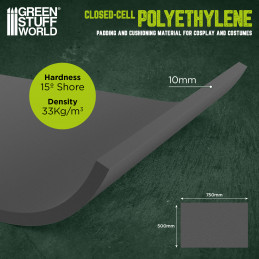 Polyethylenschaum (33 kg/m3) ist in der Welt des Cosplay und des Kunsthandwerks weit verbreitet, allerdings eher als Dämpfungsmaterialien und Füllmaterial für Cosplay in Rüstungen und anderen Kostümen und nicht als Hauptbauelement. Ihr Hauptvorteil in diesem Zusammenhang liegt in ihrer Fähigkeit, Komfort und Schutz zu bieten, ohne ein erhebliches zusätzliches Gewicht zu verursachen.