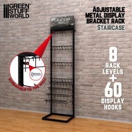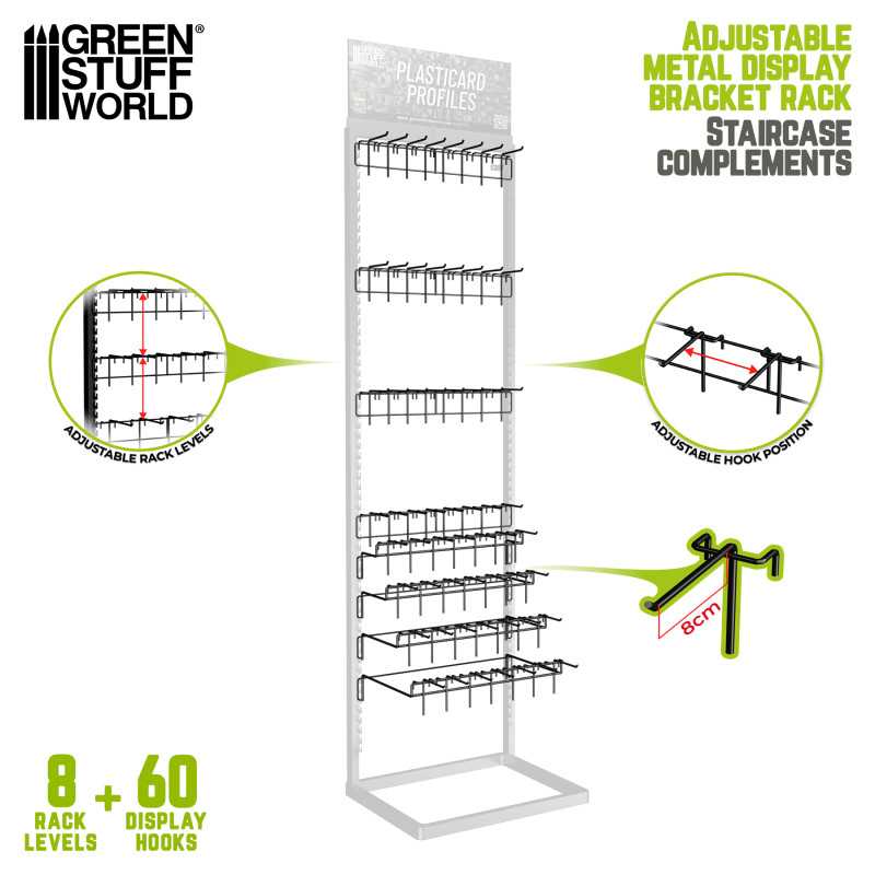 Expand the capacity of your Green Stuff World Multipurpose Adjustable Display with this pack of additional accessories. Designed to offer maximum versatility and organization, it includes hook support levels along with additional metal hooks, made entirely of metal to ensure strength and durability.